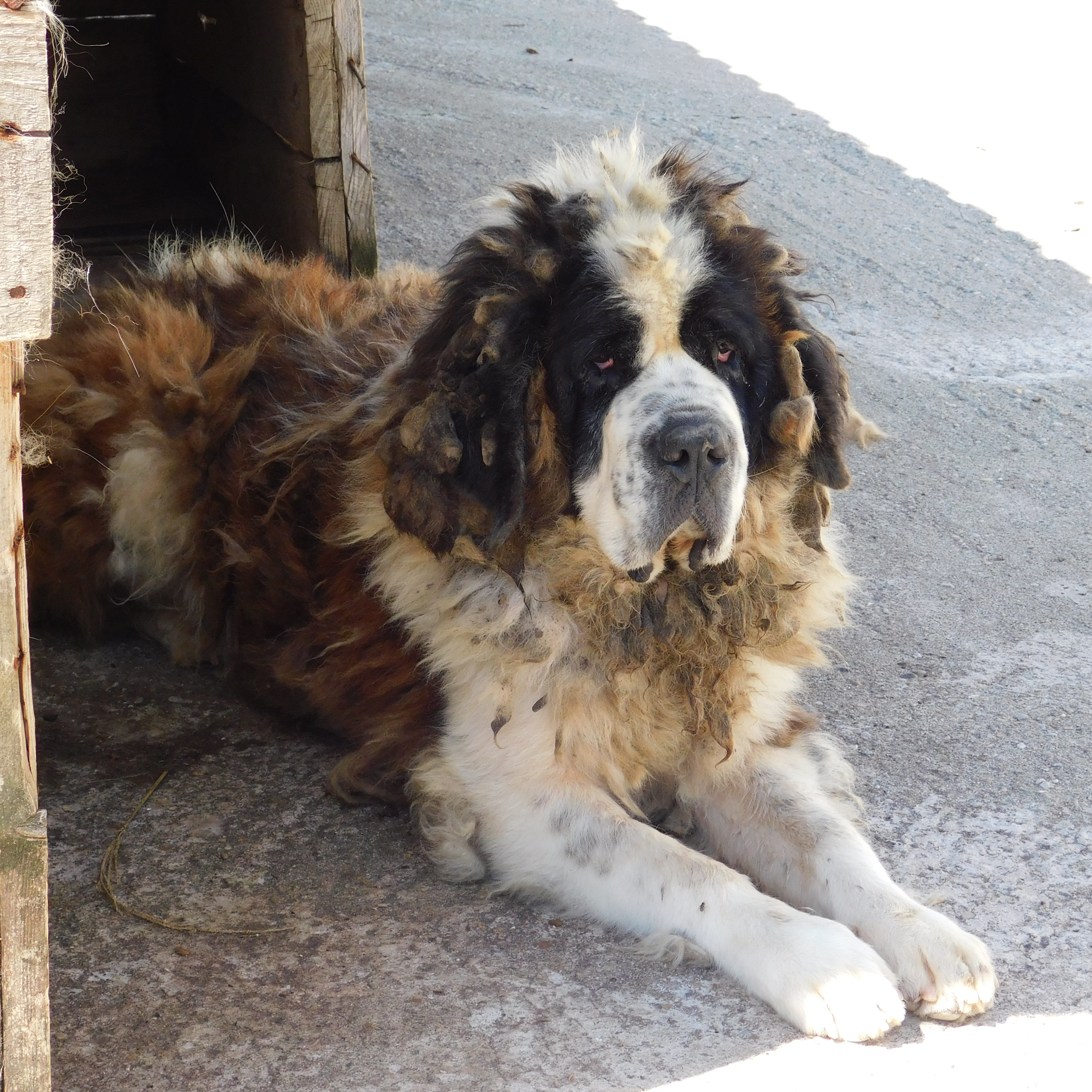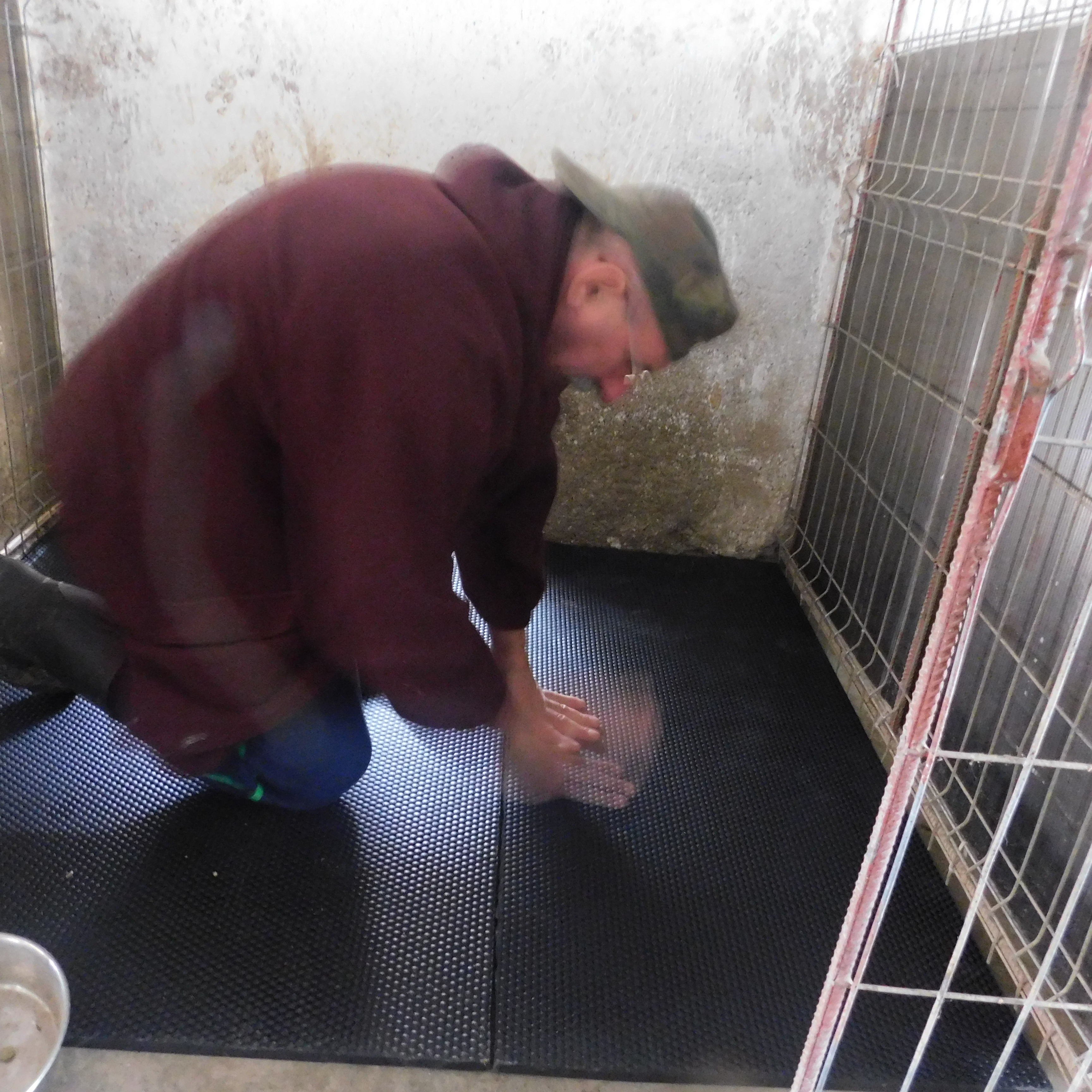 Auch in dem Innenbereich ging es wieder. Leider war das Wasser so kalt, dass man die Zwinger nicht mit dem Wasserschlauch abgespritzt werden konnten…. Letztendlich haben wir zusammen mit dem Sheltermitarbeiter die sehr verdreckten Zwinger, die mit Durchfall und Co versehen waren, gereinigt. Wir konnten per Eimer Warmwasser holen… Was uns einfach wieder überzeugt hat, dass die Pferdestallmatten perfekt sind, keine einzige ist angefressen oder zerstört worden. Die Reinigung ist so einfach, mit dem Schrubber den Dreck lösen und dann mit dem Abzieher rüber und schon sind sie trocken, keine Pfützenbildung. Einfach wunderbar. Danke noch mal an allen Spendern.