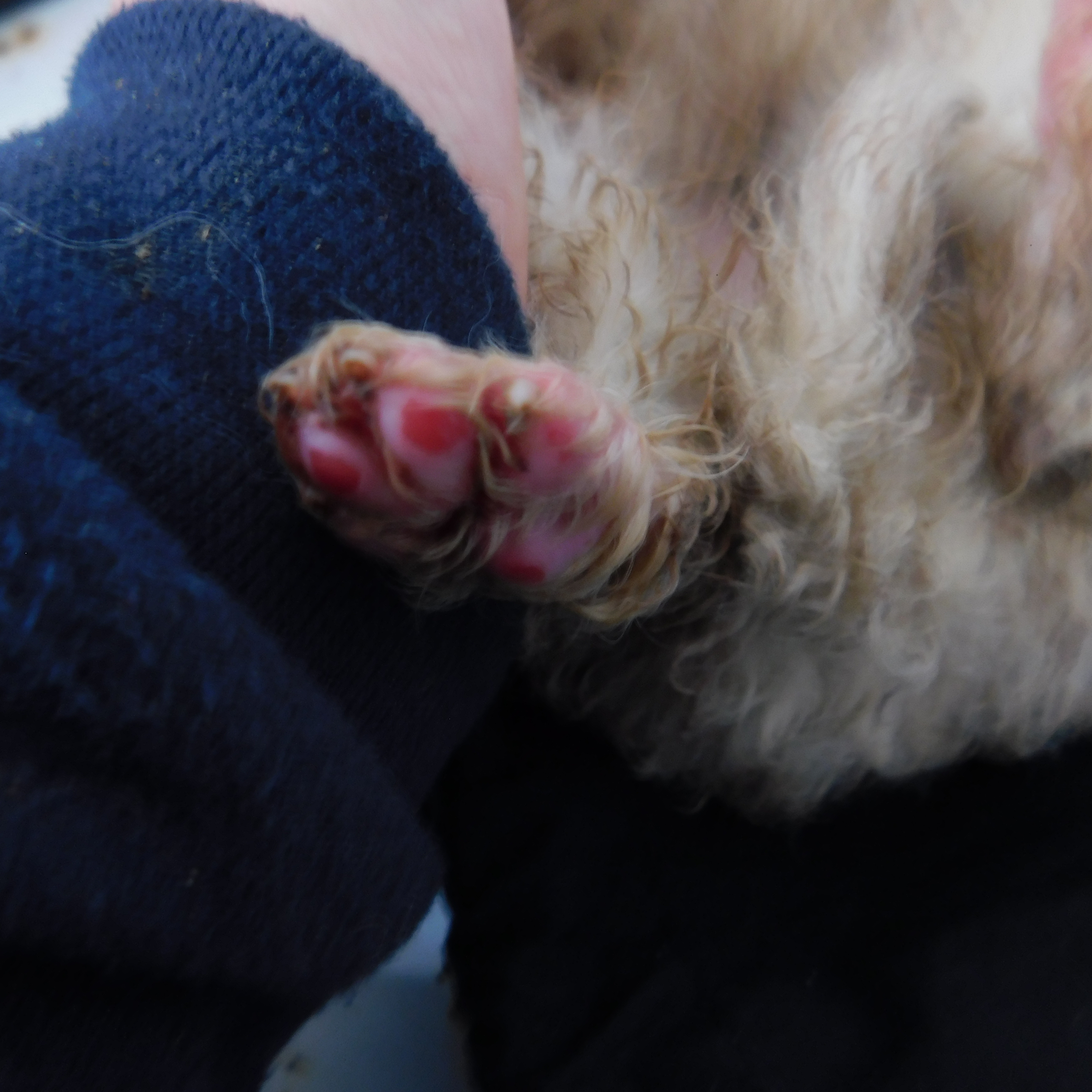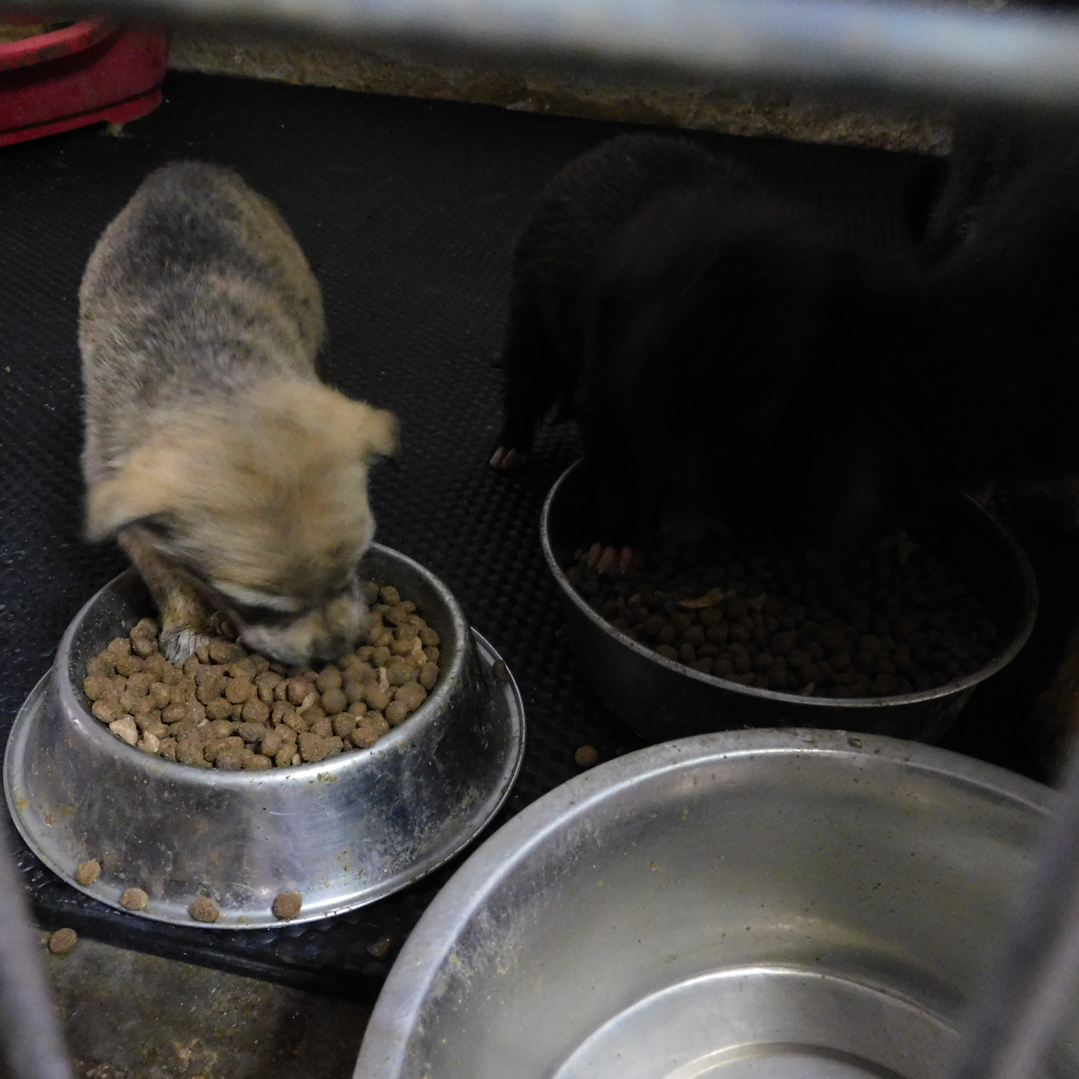 Wir haben es geschafft, in den Innenzwingern den Boden zu sanieren. Dank allen Patenschaften von 41 Zwingern konnten wir den Betonboden verbessern. Wir haben Pferdematten verlegt. Man konnte sehr schnell den Unterschied spüren. Uns hat die Notwendigkeit einfach bestätigt, siehe Bildchen von dem Welpenpfötchen, diese sind wund vom nassen, kalten Betonboden. Nun mit der Veränderung, ist der Boden isolierter und vor allem trocknet er schnell, sowie die Säuberung ist einfacher. Weiterhin haben wir einen Wetterschutz zur Außentür vom Innen in den Außenbereich angebracht und 3 Zwinger in eine Notfallstation umgewandelt, in dem wir Plexiglaswände angebracht haben. Diese Zwinger sind zur Desinfektion noch optimierter um Notfälle unterzubringen.